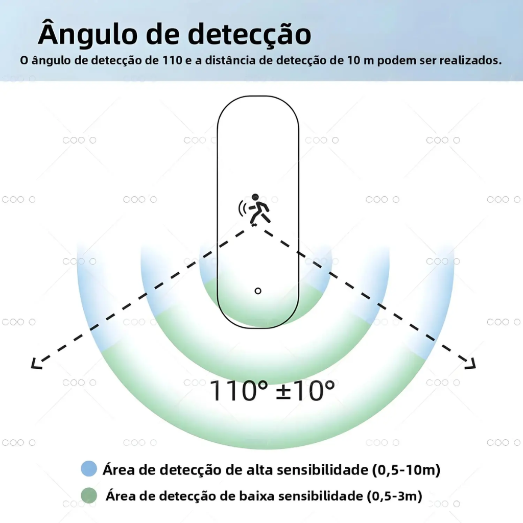 • Detecção precisa de movimentos até 10 metros, 110° de alcance